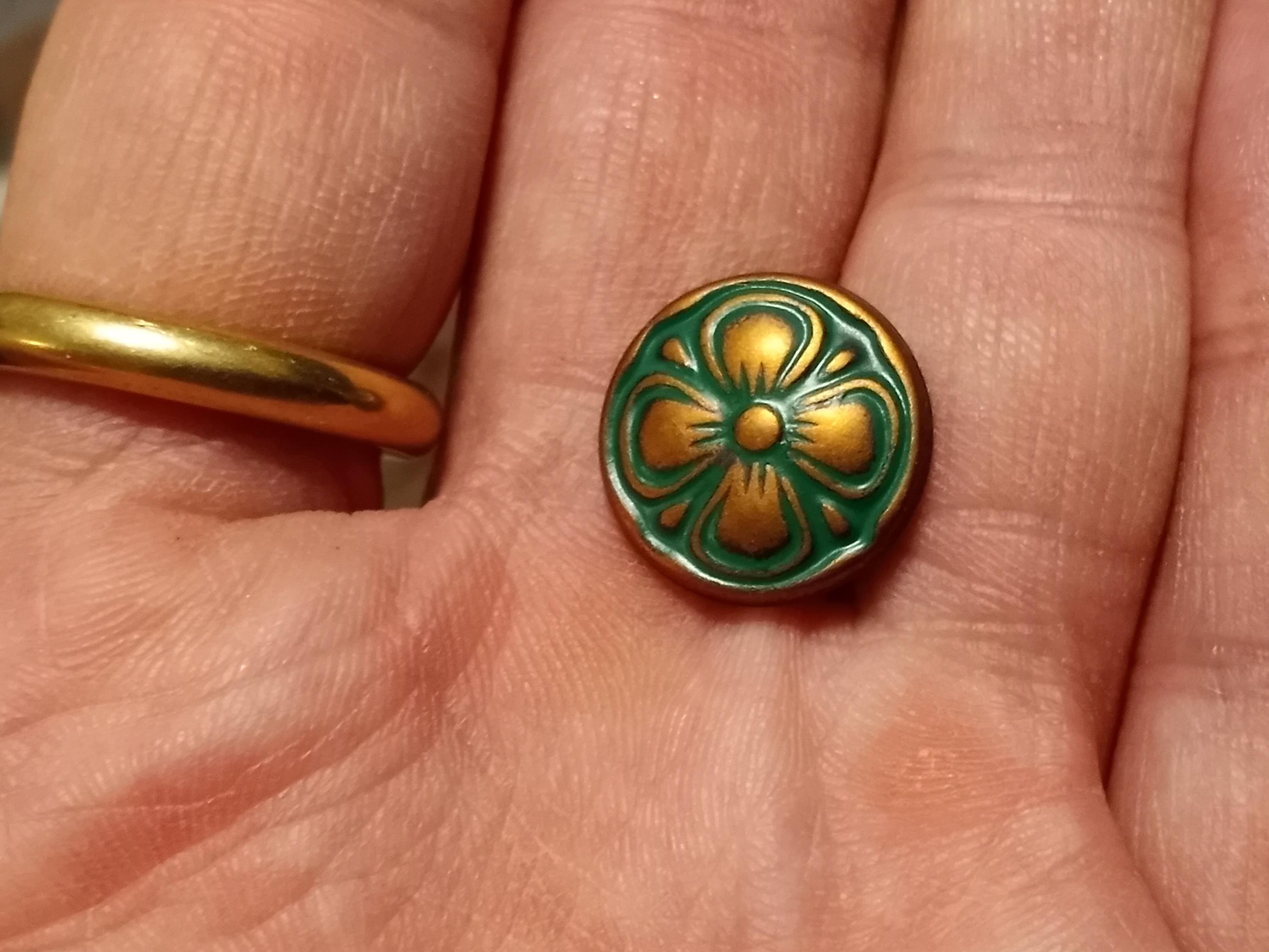 Design: Antique Copper Clover Metal Shank Buttons in Deep Cyan Color