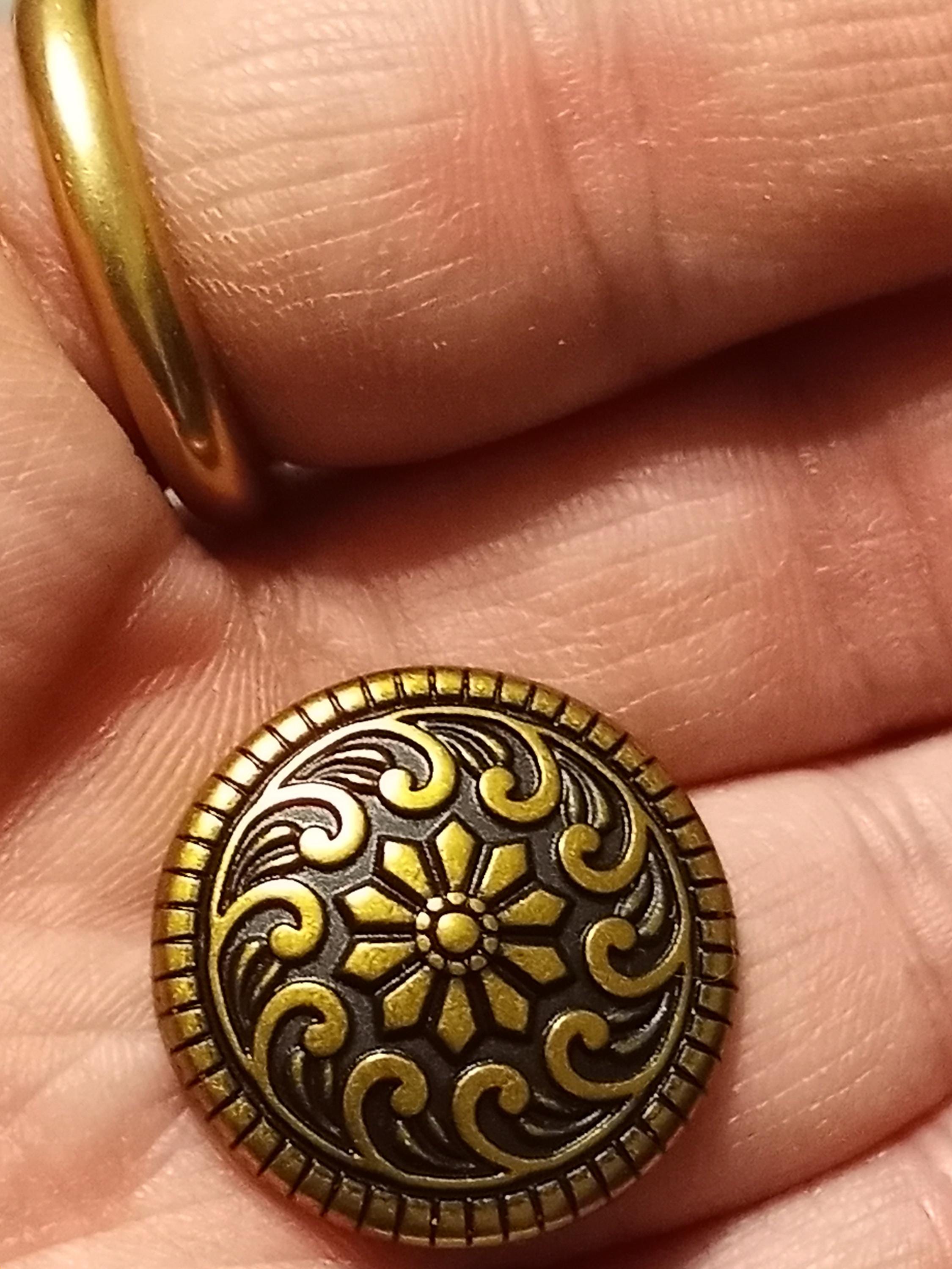 Design: Sea Wave and Flower Pattern Antique Brass Metal Shank ButtonsSize: 23mm (Approx 7/8 inch)Shank Hole Size: 2mmQty: 6 pcsNo:1668